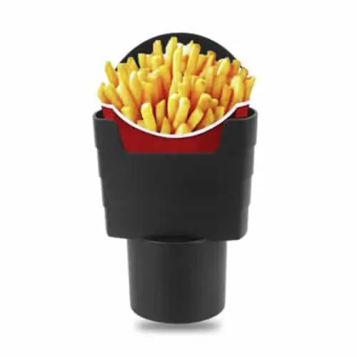 Ben jij vaak in een drive in te vinden? Dan is deze set perfect voor in je auto! Kruimel en mors geen eten en drinken meer met behulp van deze ideale auto gadgets. Hang het dienblad aan je stuur en plaats de saushouder en friethouder in je auto en geniet van je maaltijd!