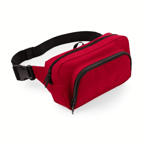 Ob du nun spazieren gehst, auf Reisen bist, Sport treibst oder zu einem Festival gehst, mit dieser roten Organizer-Bauchtasche von Bagbase hast du all deine wichtigen Sachen immer griffbereit! Die Tasche ist aus robustem Polyester gefertigt und verfügt über 2 geräumige Fächer, in denen du dein Telefon, Portemonnaie, Schlüssel, Reisepass, Geld oder Reisedokumente leicht verstauen kannst. Der Gürtel um deine Hüfte ist mit einer sicheren Clipverschluss verstellbar, sodass du die Tasche jederzeit perfekt anpassen kannst, und mit dem Reißverschluss schließt du die beiden Fächer mühelos. Die Tasche ist 24 x 13,5 x 9 cm groß und hat ein geräumiges Volumen von 2,5 Litern. Vervollständige dein Festival-Outfit mit dieser coolen Gürteltasche! Auch ideal für Unterwegs oder beim Sport.