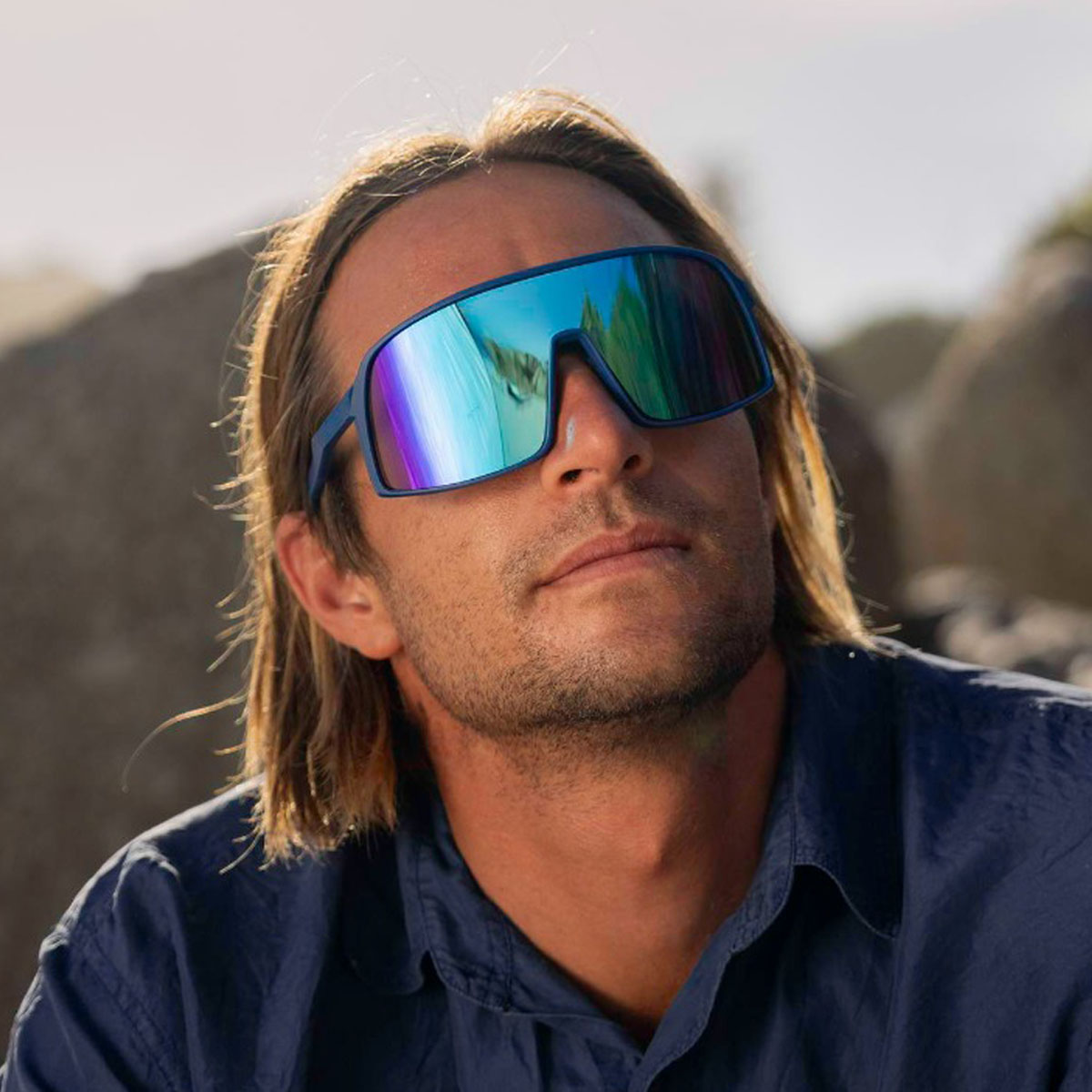 Experience stylish sun protection with our blue sports sunglasses featuring blue mirrored lenses. These sunglasses combine style with practical functionality. The mirrored lenses complete the look while reducing glare and promoting clear vision, even in bright sunlight. Designed for comfort, you’ll notice it in every detail. The lightweight frame allows you to wear them effortlessly, while the blue temples ensure a secure fit, no matter the shape of your face. This means you don’t have to worry about the sunglasses slipping off. Whether you want to elevate your style, protect your eyes, or simply add a touch of confidence to your look, our blue sports sunglasses with blue mirrored lenses are the perfect choice.Specifications: