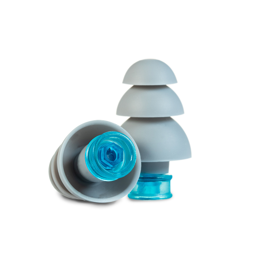 Les bouchons d’oreilles Pluggerz Uni-Fit Eau sont dotés d’un filtre d’atténuation unique qui réduit le bruit ambiant de 25 dB à un niveau inoffensif, tout en permettant la communication.