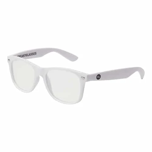 ;Spacebril Deluxe met wit montuur en standaard diffractie effect.