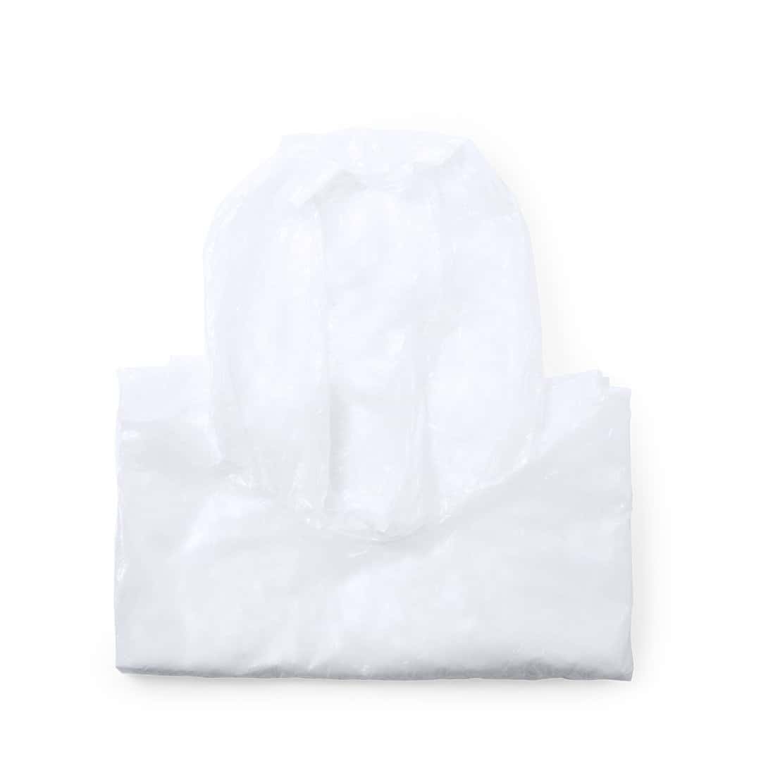 Stay dry in every rainstorm with this white disposable rain poncho with storage bag! This fine white disposable rain poncho is made of sturdy polyethylene plastic and is equipped with a hood. The poncho has dimensions of 127 x 102 cm (L x W) and is suitable for both women and men and is easily stored in the included RPET storage bag. Easily take the poncho with you in your handbag, bicycle bag, or hang it on your bag or pants with the carabiner, so you always have the poncho at hand in an unexpected rainstorm! Once you’ve used the poncho, you can always keep the storage bag to store a new poncho.