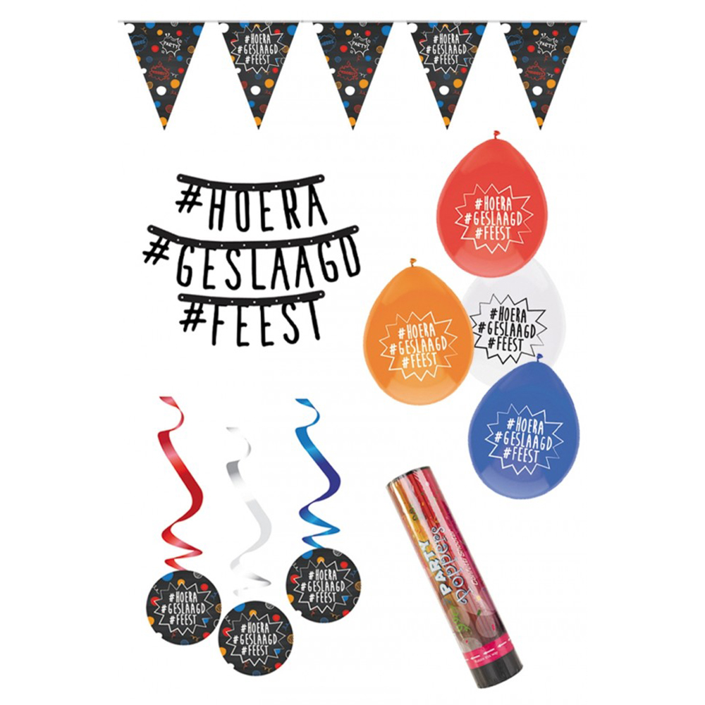 Mach dein erfolgreiches Fest mit diesem tollen Partyset noch spezieller! Das Set enthält eine Buchstabengirlande, Hängedekoration, eine Wimpelkette, einen Konfettishooter und 8 Ballons. Mit diesem umfangreichen Partyset gestaltest du deine Abschlussfeier noch festlicher!