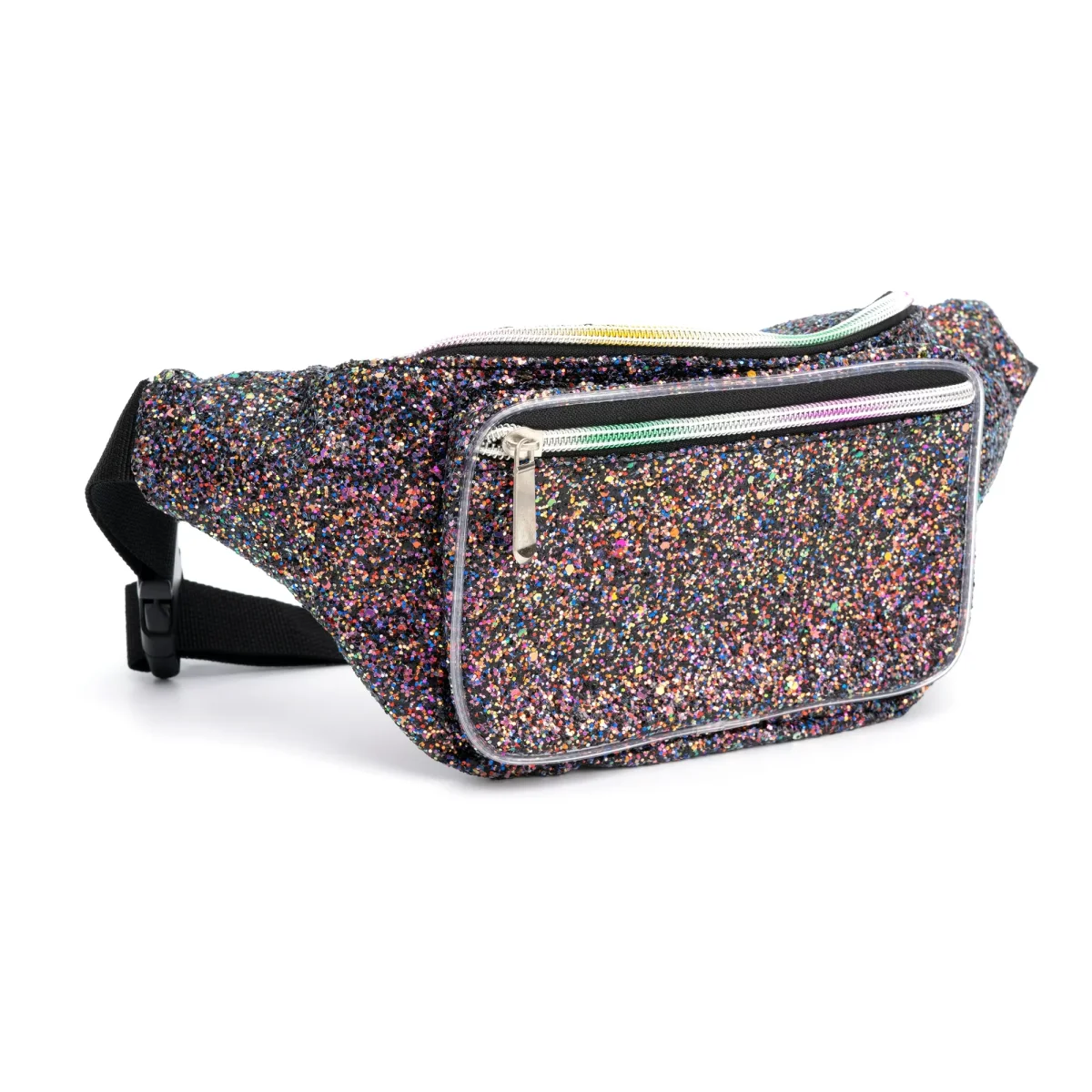 Mit dieser farbenfrohen Glitzer Hüfttasche hast du all deine wichtigen Utensilien immer griffbereit auf deinem Lieblingsfestival!