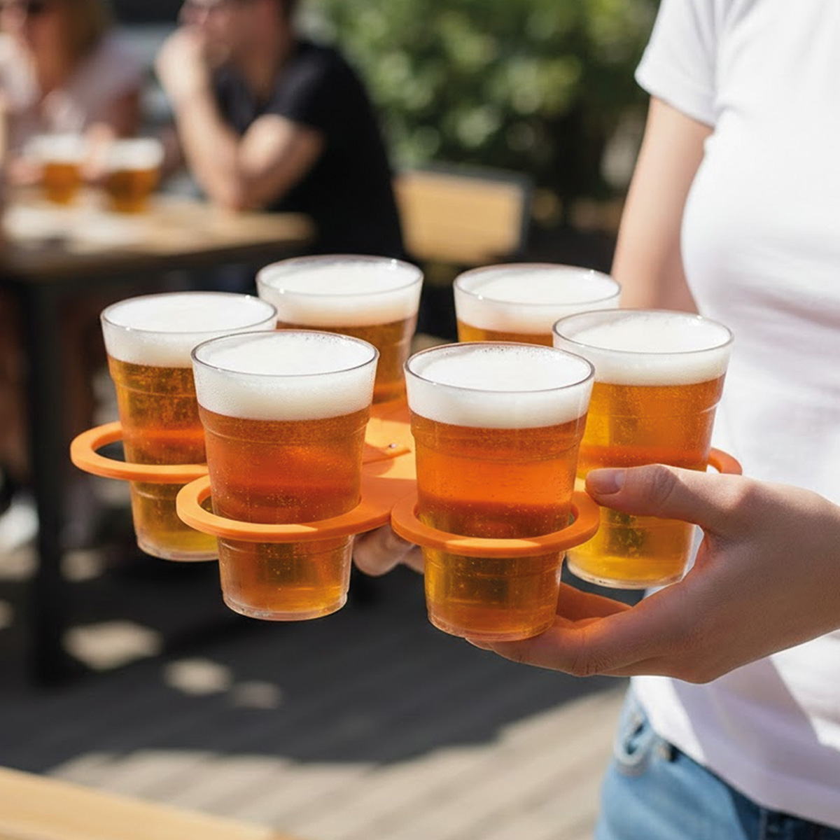 Neem gemakkelijk al jouw drankjes voor je vrienden mee op een festival met deze handige bierwaaier cupkeeper!