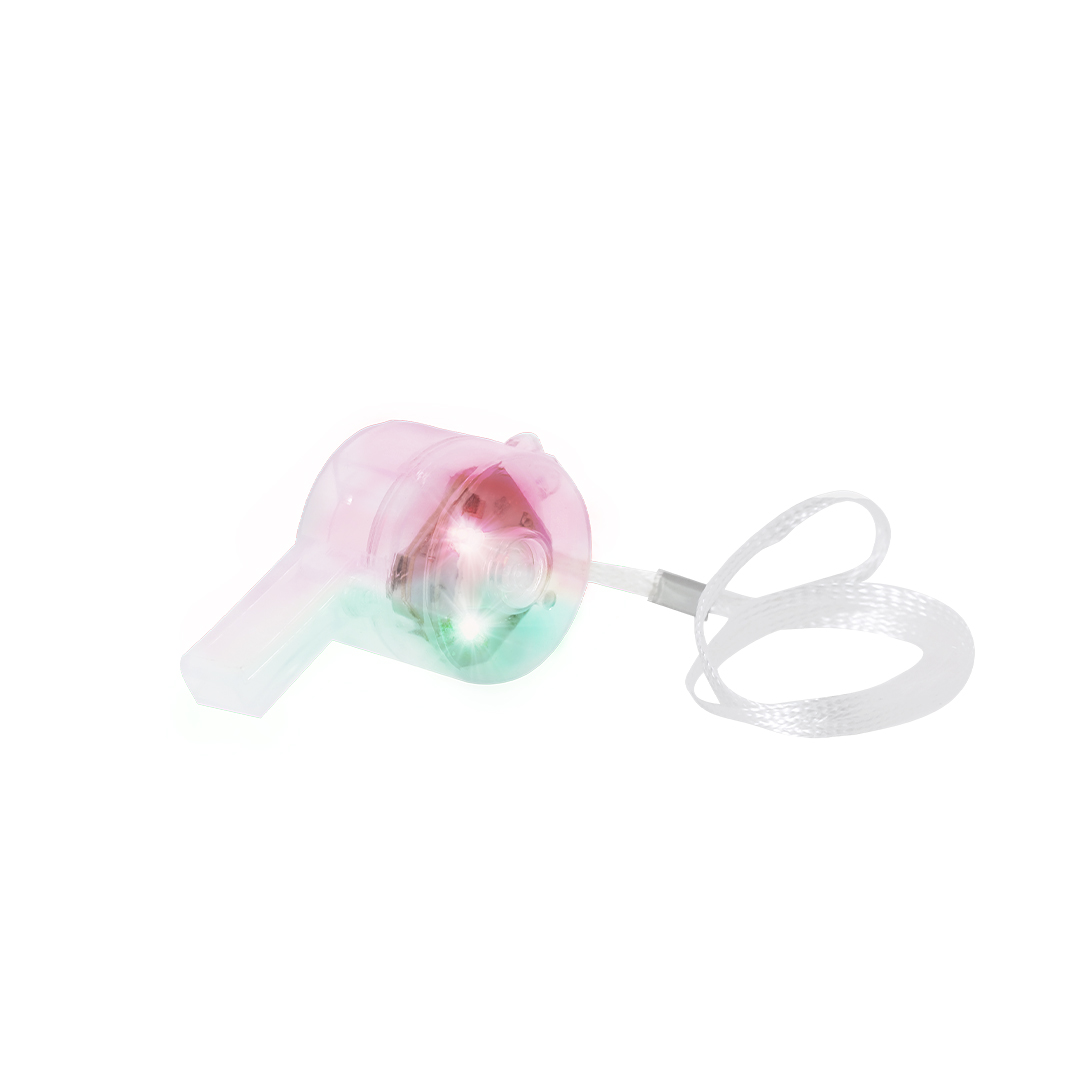 Breng licht en geluid samen met dit feestelijke lichtgevende fluitje! De witte behuizing bevat meerkleurige LED-lampjes die oplichten in drie verschillende standen voor een opvallend effect, waar je ook bent. Dankzij het meegeleverde koord hang je het fluitje makkelijk om je nek – ideaal voor feestjes, concerten, sportevenementen of festivals.