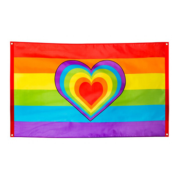 Laat je ware kleuren stralen met deze levendige regenboog vlag met hartje!