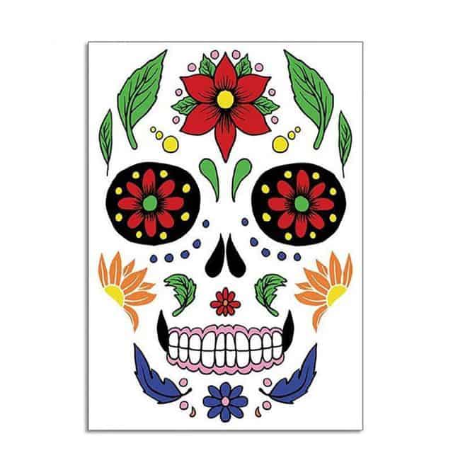 Avec cette tatouage temporaire amusante, complétez votre look d’Halloween! Faites peur à vos amis avec ce tatouage coloré sur le thème Dia de los Muertos. Le tatouage est parfait pour les festivals ou les fêtes à thème. Avec ce tatouage temporaire, vous ne passerez pas inaperçu lors de votre fête d’Halloween!