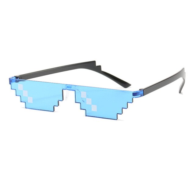 Deze Minecraft 6 bits zonnebril helpt jou de blits te maken tijdens feestjes en festivals. Ook voor zelfverklaarde Nerds, hippe Thug Life vloggers en wannabe-gangsters, energiedrankjes drinkers of de haters! De bril is gemaakt van kunststof, heeft blauwe lenzen en zwarte pootjes. Maak jouw festivaloutfit helemaal af met deze leuke Thug Life bril!