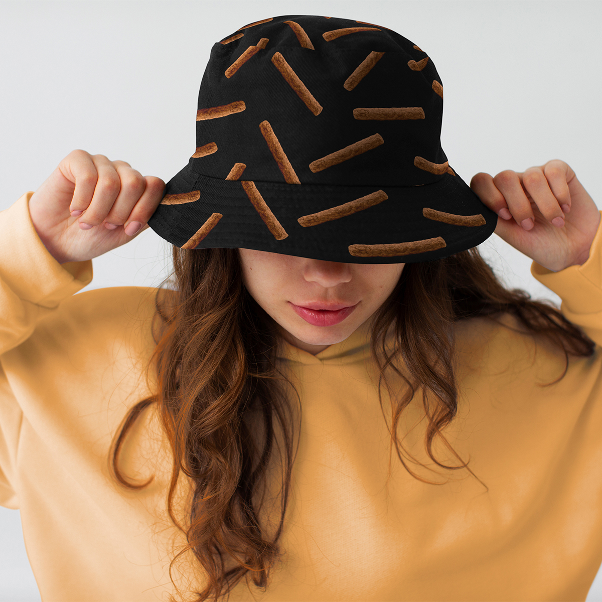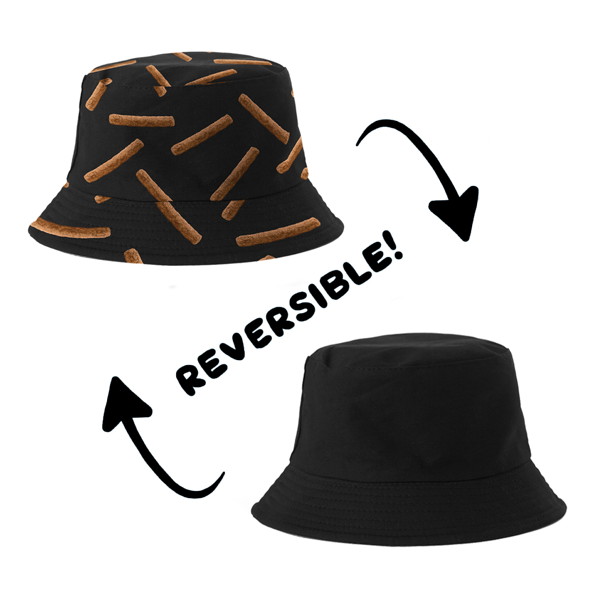 Dit superleuke vissershoedje van Yucka is ideaal om je tegen de zon te beschermen tijdens het vissen, zonnen of tijdens het feesten op een festival! De Bucket Hat is gemaakt van 50% katoen en 50% polyester voor optimaal draagcomfort en is reversible, je kunt het hoedje dus op 2 manieren dragen. De ene kant heeft een grappige frikandel print en de andere kant is volledig zwart. Dit leuke vissershoedje heeft een hoofdomtrek van ca. 58 cm en maakt jouw festivaloutfit helemaal af!
