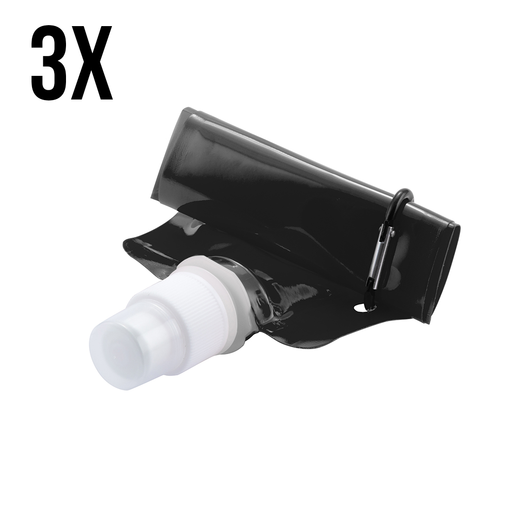Dankzij het oprolbare ontwerp zijn de zakken compact als ze leeg zijn, ideaal om op te bergen. De handige schroefdop zorgt ervoor dat je water goed afgesloten blijft, zelfs tijdens de meest swingende optredens. Deze set bevat 3 waterzakken, zodat je altijd een reserve hebt of er één kunt uitlenen aan een vriend.