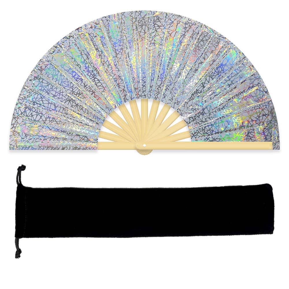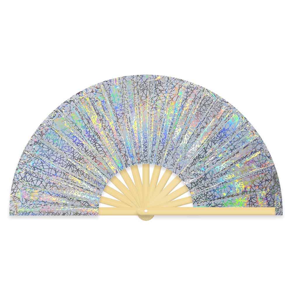 Met deze XXL festival waaier met bamboe handvat en holografisch effect zorg jij voor extra veel verkoeling op ieder feestje!