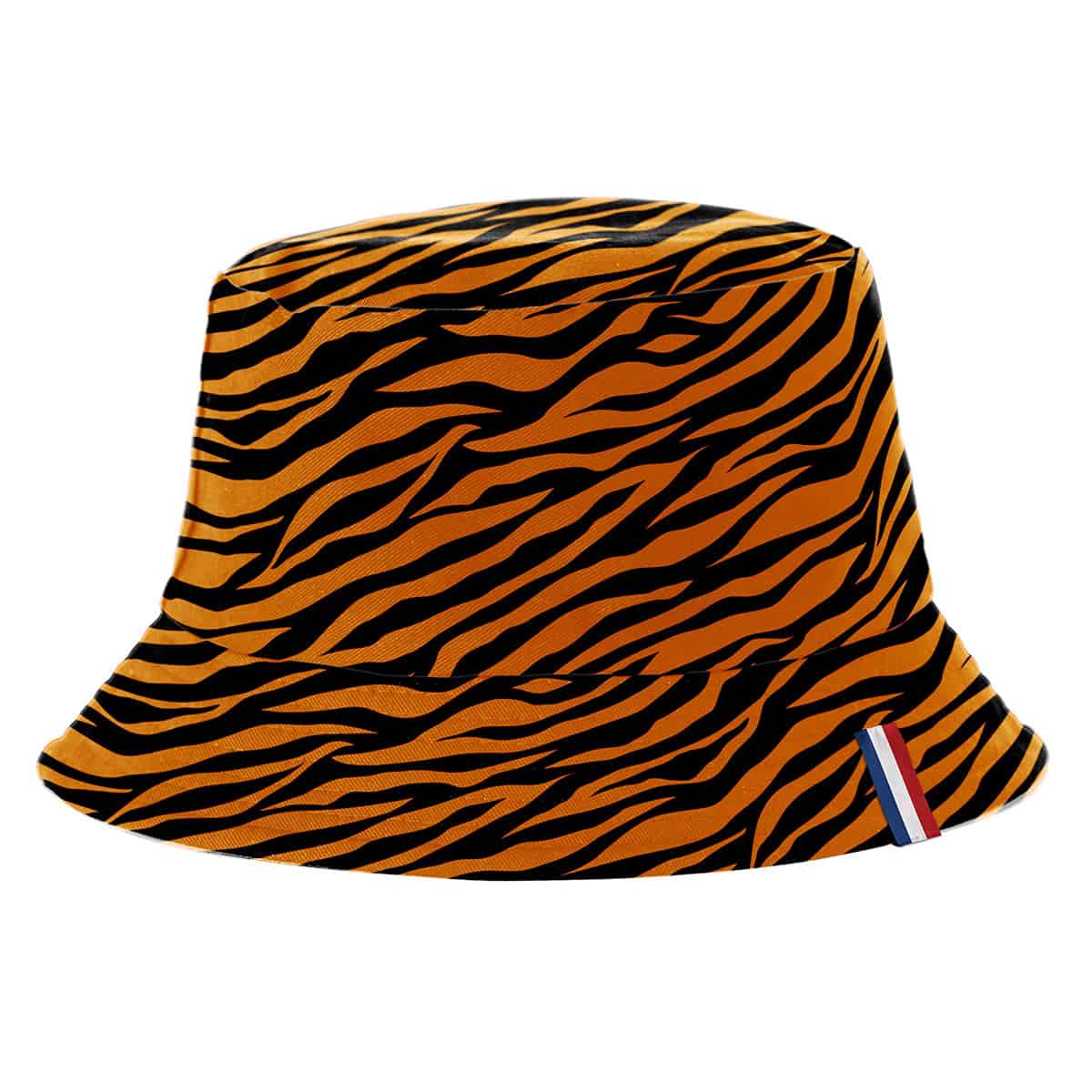 Dit superleuke omkeerbare vissershoedje is perfect om je te beschermen tegen de zon tijdens allerlei festiviteiten! De bucket hat is gemaakt van 100% polyester voor optimaal draagcomfort en is omkeerbaar, waardoor je twee stijlen in één krijgt. De ene kant is volledig oranje, terwijl de andere kant een opvallende oranje tijgerprint heeft.