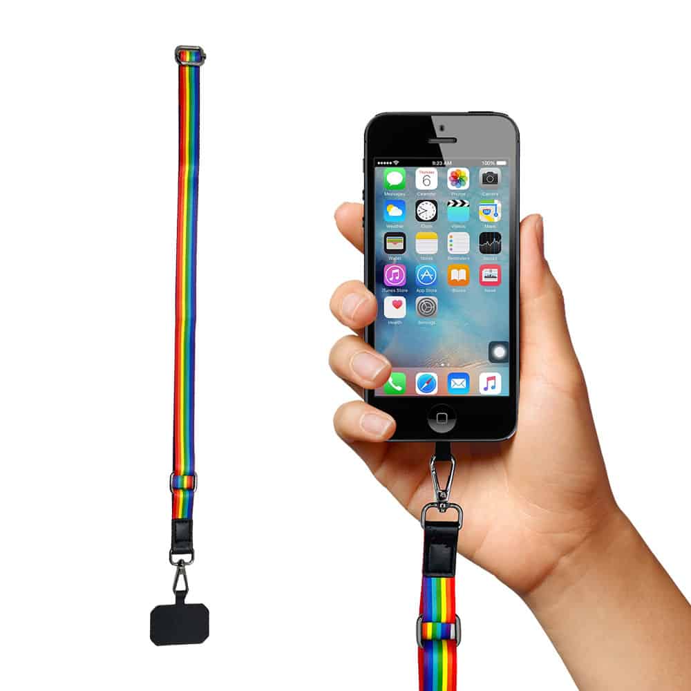 Dieses universelle Telefonkordel mit Regenbogenmuster passt auf jedes Telefon in Verbindung mit einer Hülle.