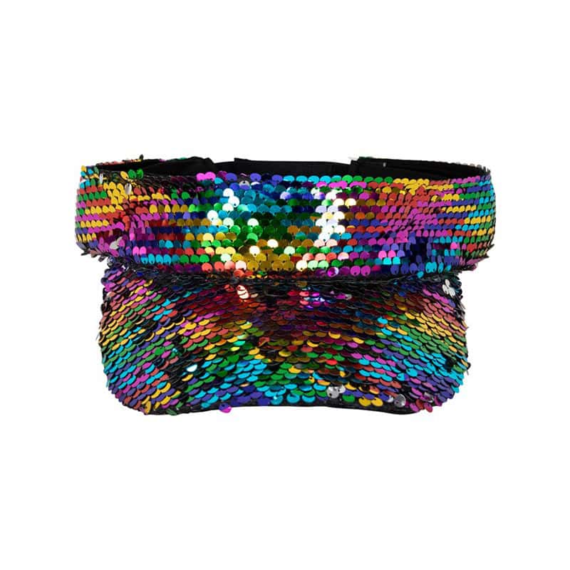 Maak jouw festival look helemaal af met deze kleurrijke pailletten zonneklep!